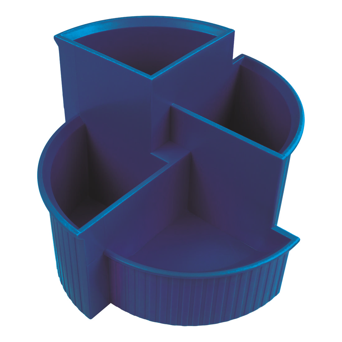 The multi pen holder is made of opaque and matt material and ensures a tidy desk. The product consists of a black holder with an elegant stripe design. It has three large compartments for pens, scissors or rulers and one compartment for small items like paper clips or thumbtacks. The integrated non-slip rubber pads protects against slipping.