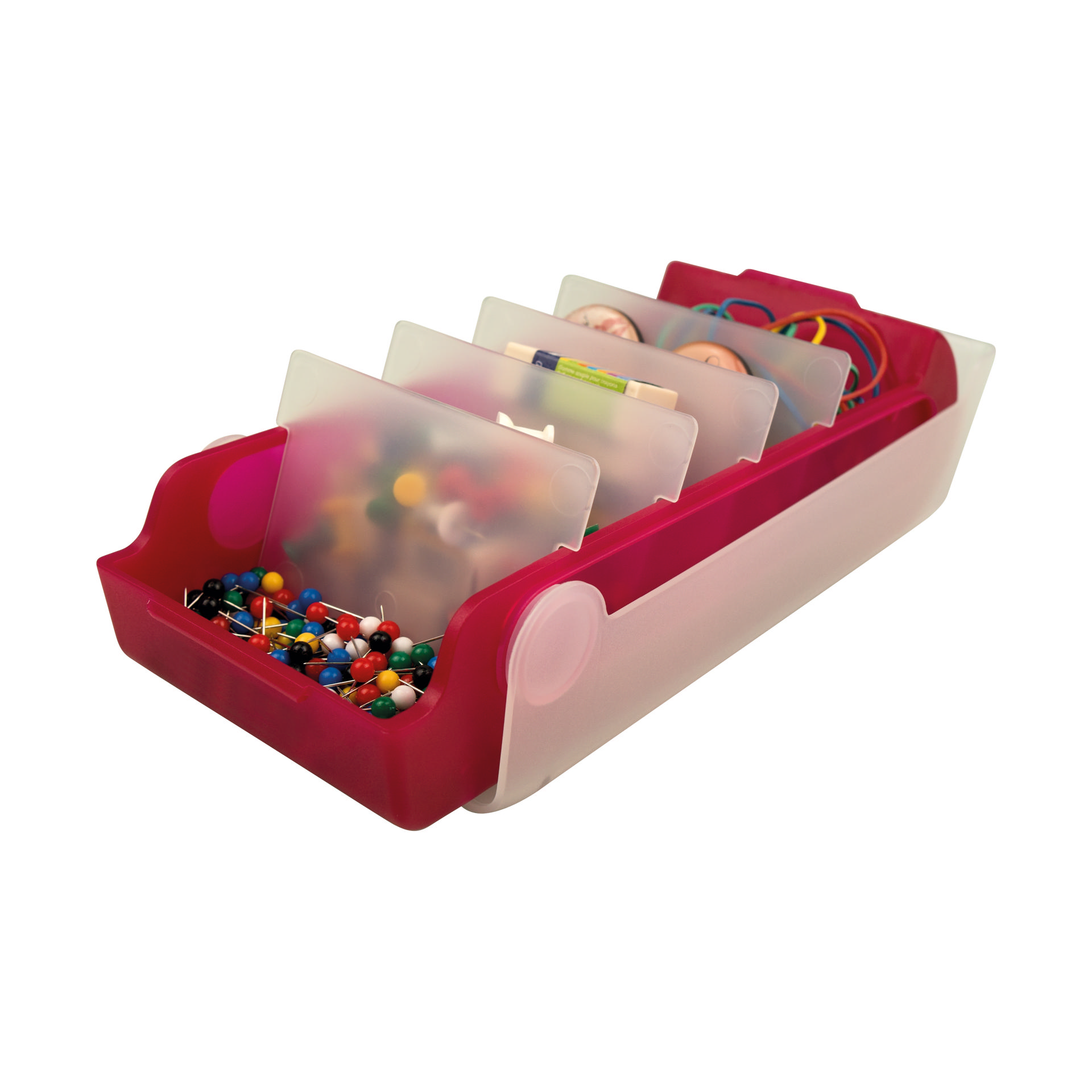 - 4 dividers for up to 5 variably adjustable compartments.