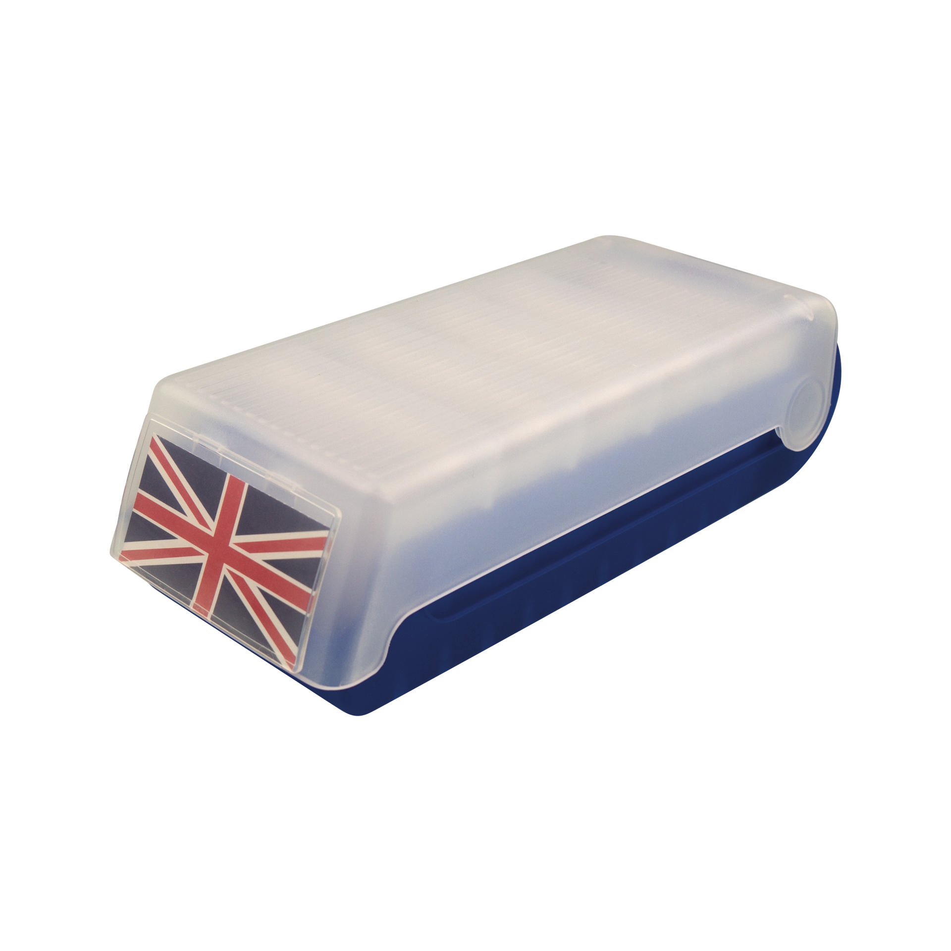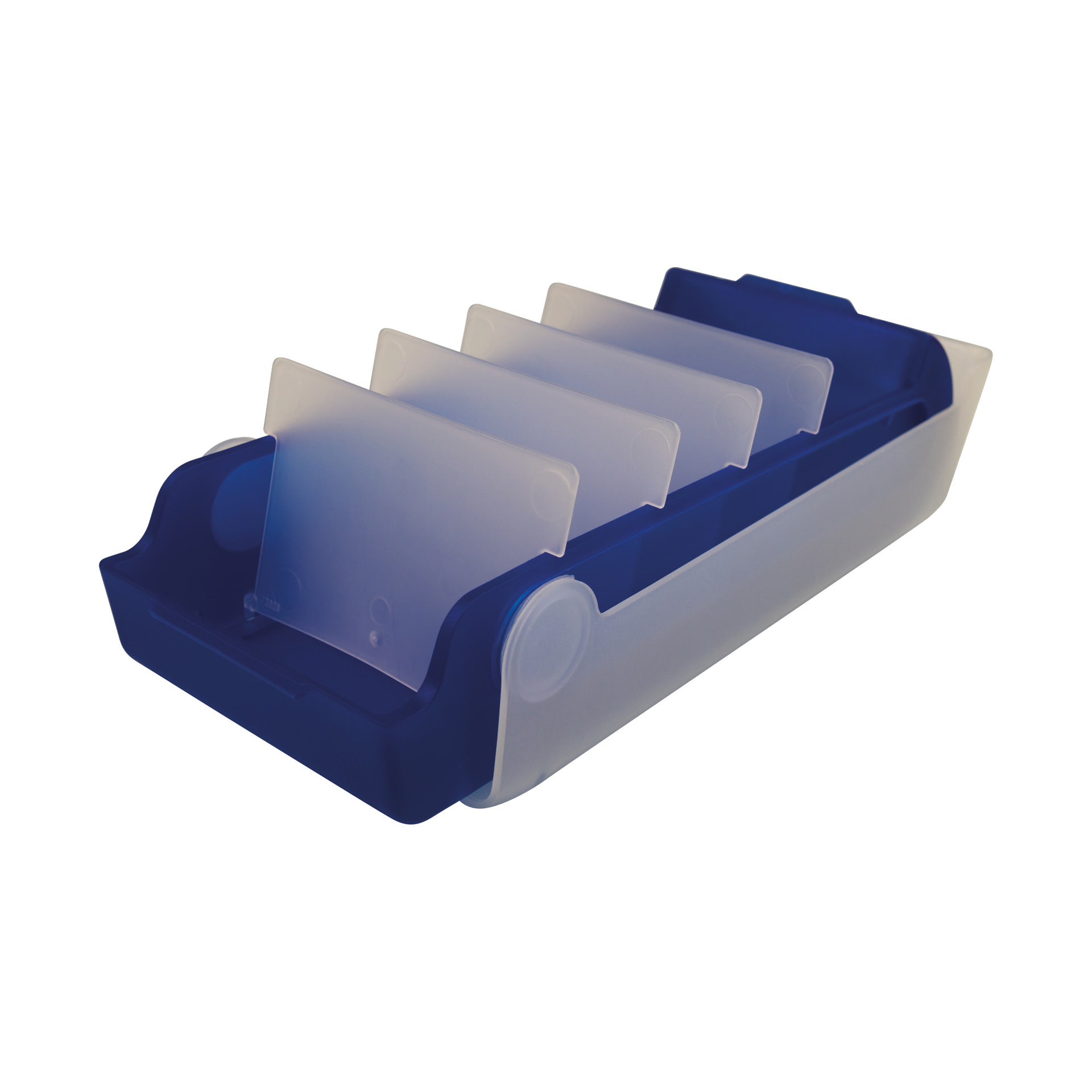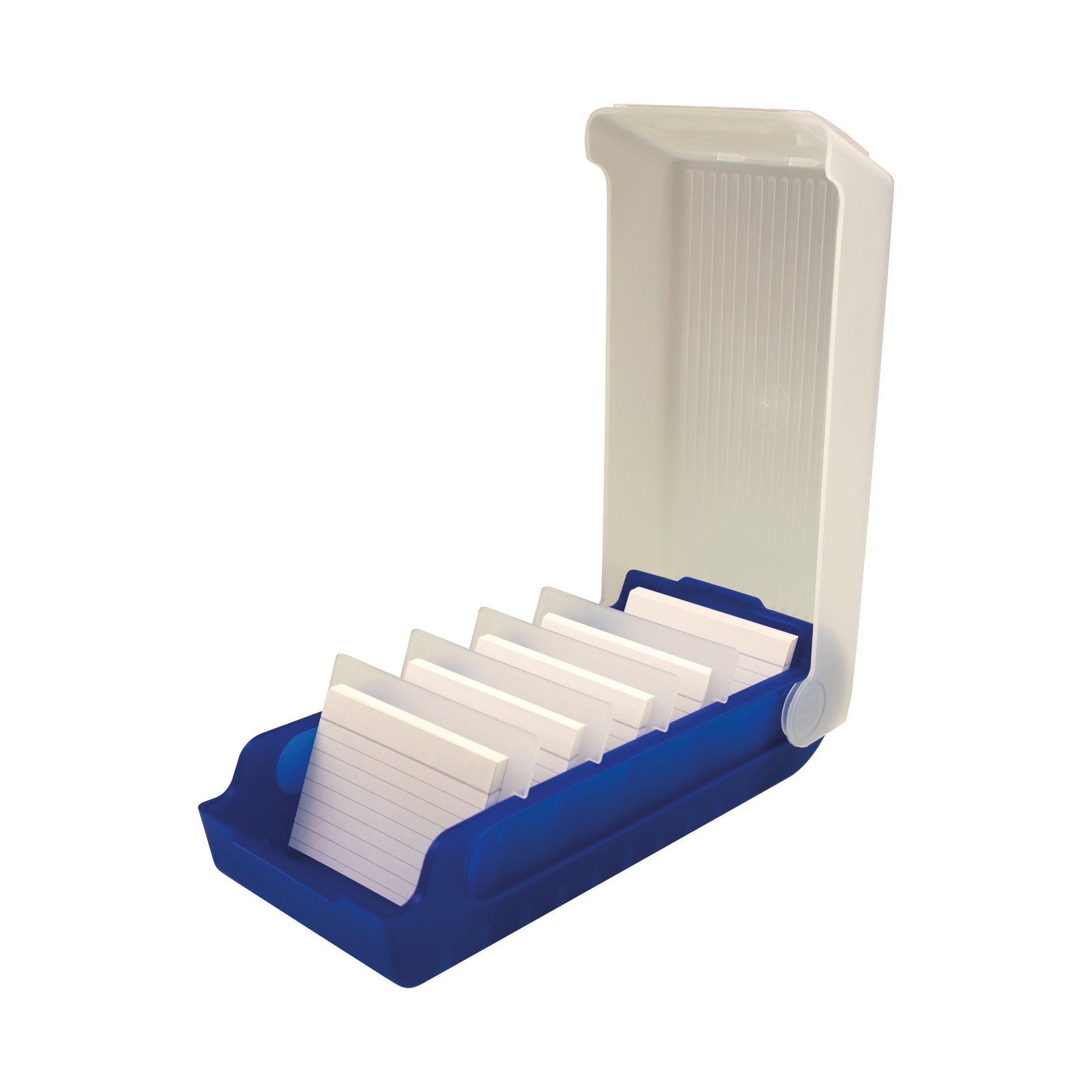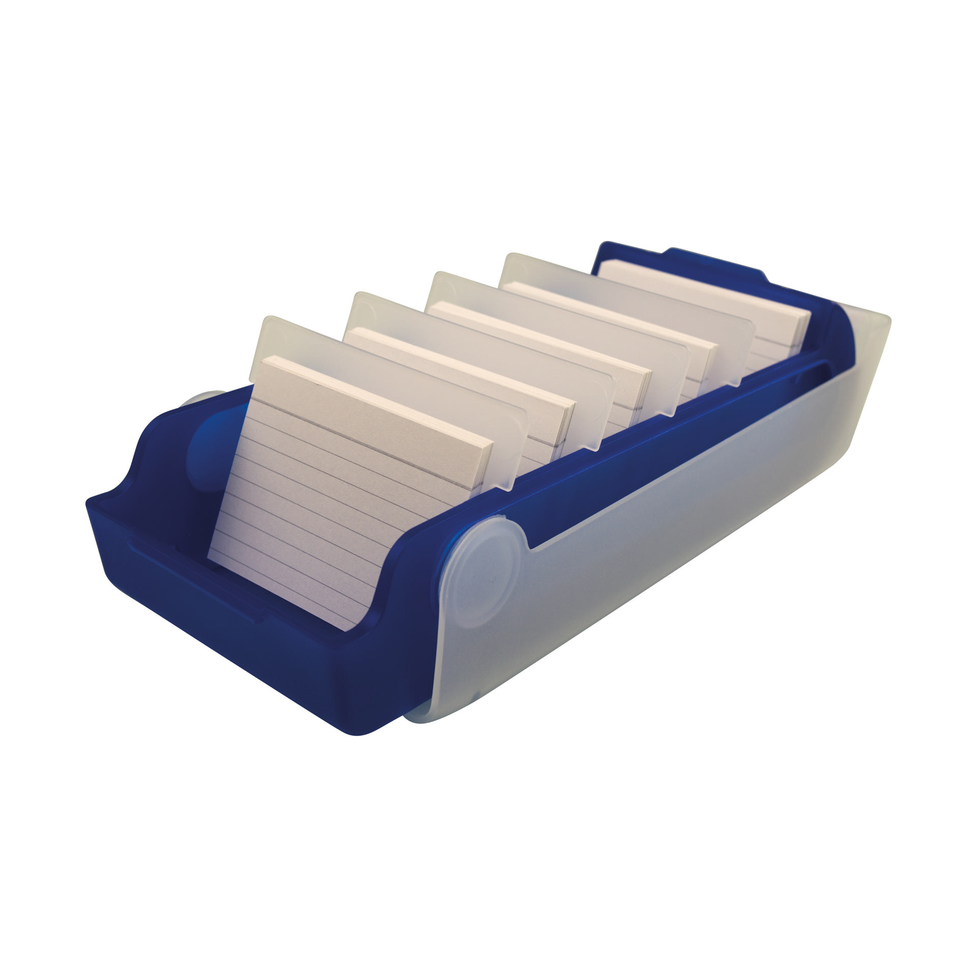 The learning card storage box for the A7 cards (landscape) is made of an translucent plastic and has four dividers for up to five variably adjustable compartments. The product comes with 100 lined index cards and has an integrated sign with country flags. the lid is removable and can be pushed under the for continuous use, so that the cards are exposed. Up to 800 cards can be storred on the product. The box can be used for storing notes, as well as for learning vocabulary or other learning content.