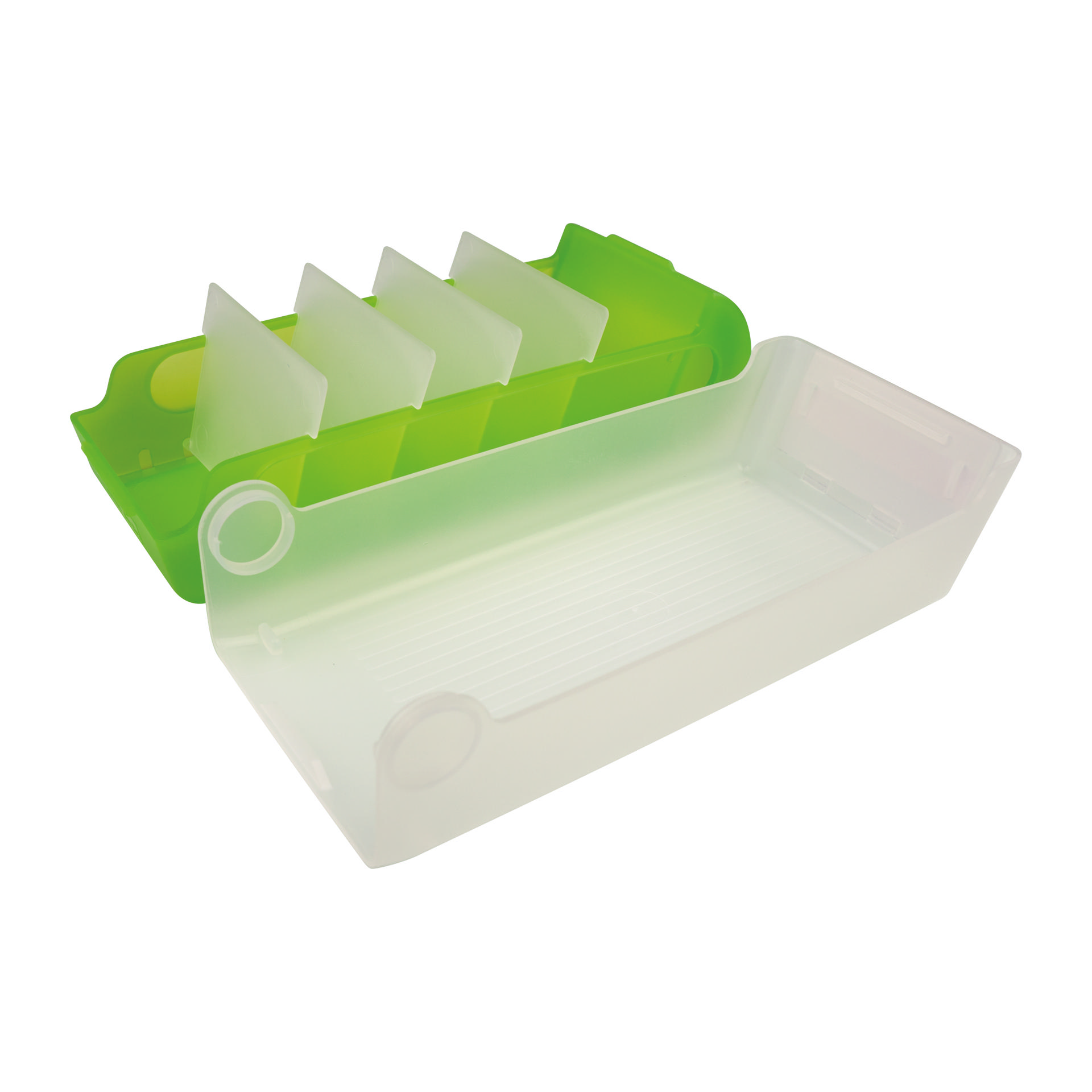 - 4 dividers for up to 5 variably adjustable compartments.