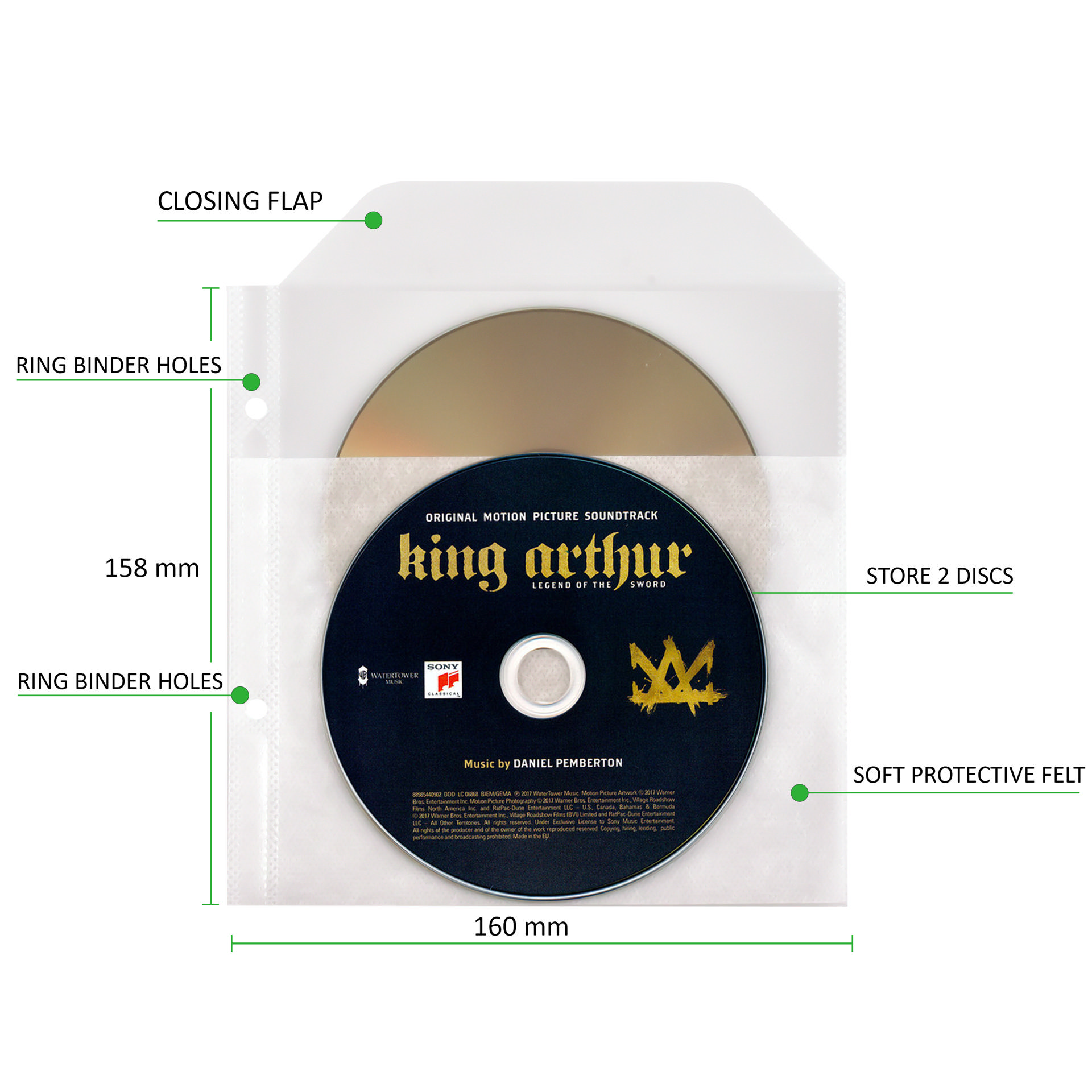 Safe and scratch-free storage for your Blu-Ray discs with our single or double Sleeves with felt and binder holes. Holds 1–2 discs, cover and booklet, with a practical flap, flexible storage and up to 70 % space saving. A smart and durable solution for your collection.