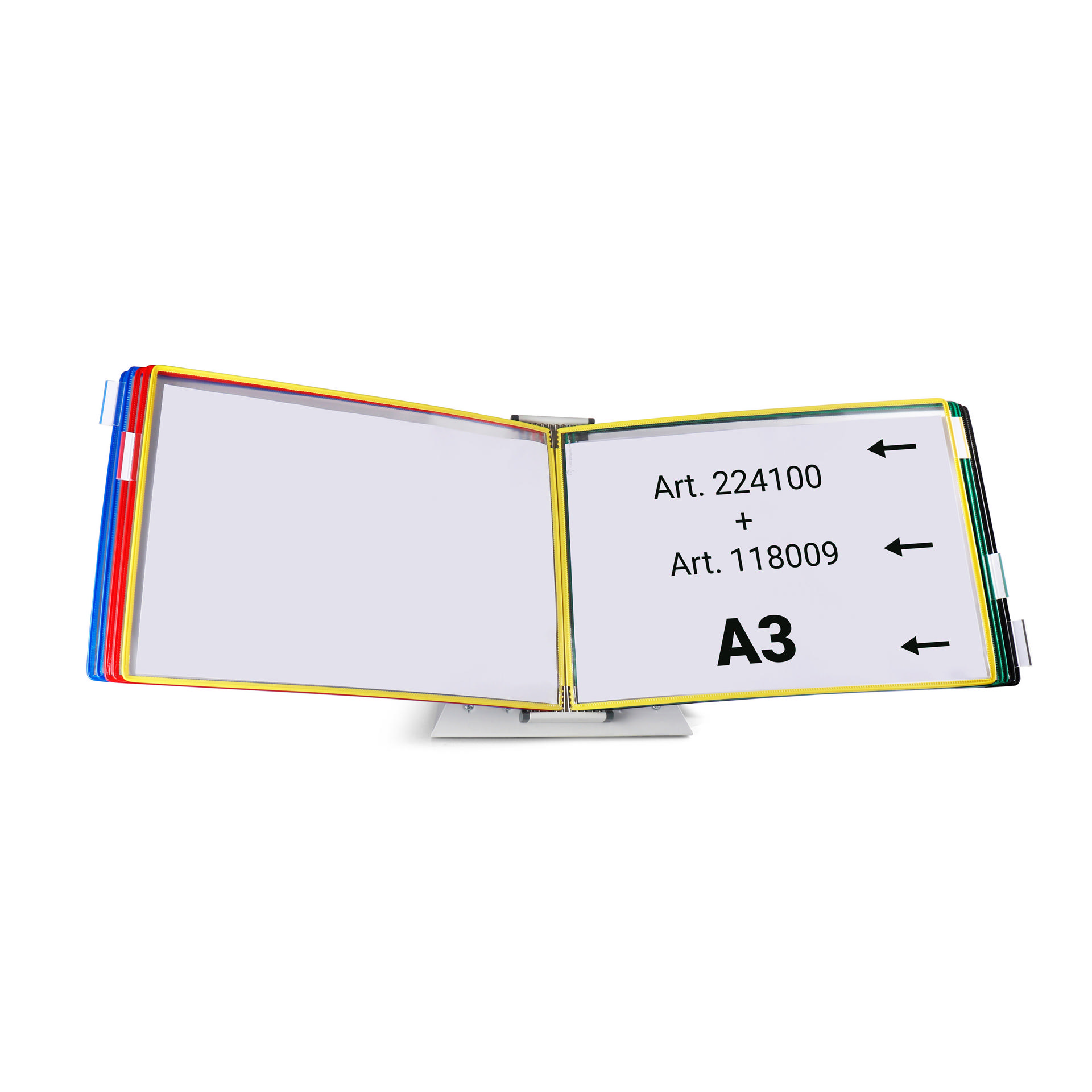 Desk stand mounted with empty brackets ready to accommodate any pocket of your choosing to create bespoke document display systems. Comes with side stops and the freedom to choose your own combination of pockets to meet your specific needs. Over a hundred combinations of pocket types, sizes and colours are available! Pockets not included.