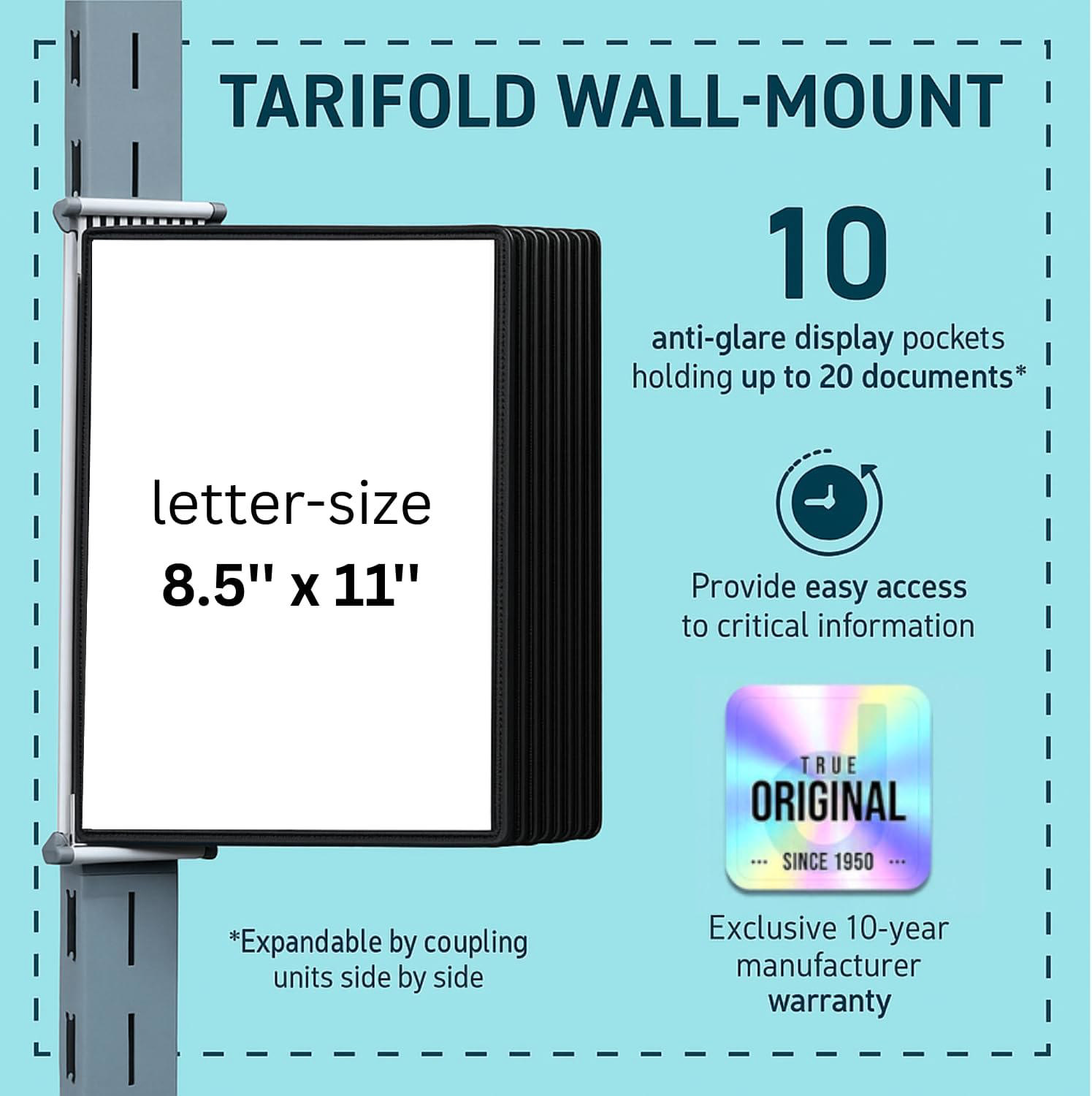 Tarifold Wall Mount Reference & Display System – 10 Black Pockets, Letter-Size
