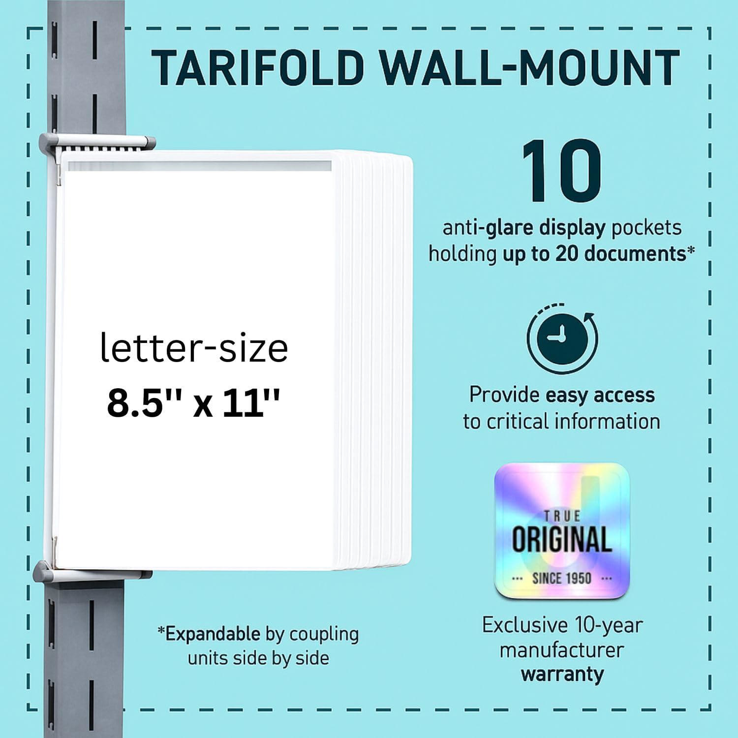 Tarifold Wall Mount Reference & Display System – 10 White Pockets, Letter-Size