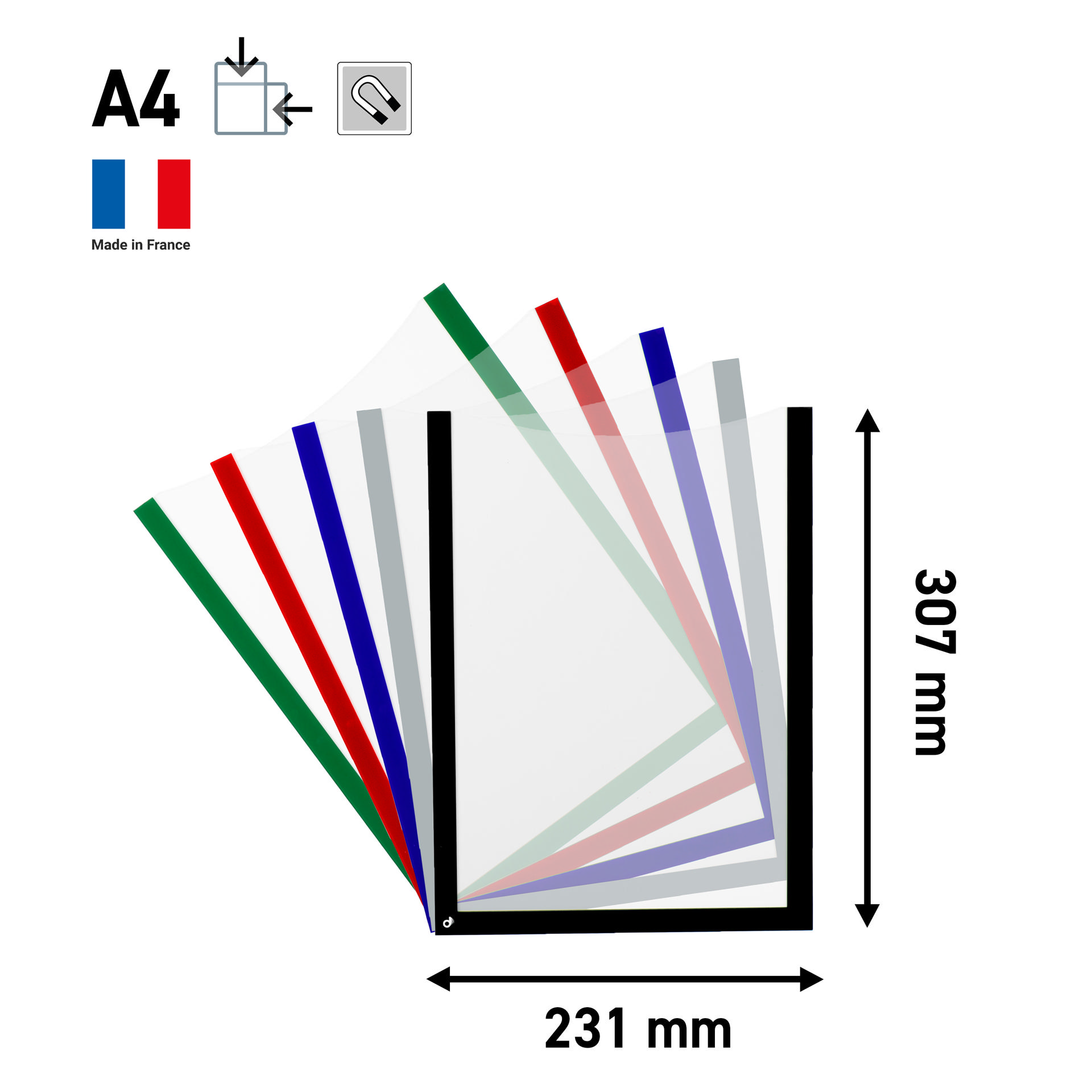 Highlight your important information with this sturdy and lightweight coloured magnetic document frame. The document inside can easily be inserted and replaced thanks to the wide easy grab feature. Ideal for use in LEAN management on a magnetic board.