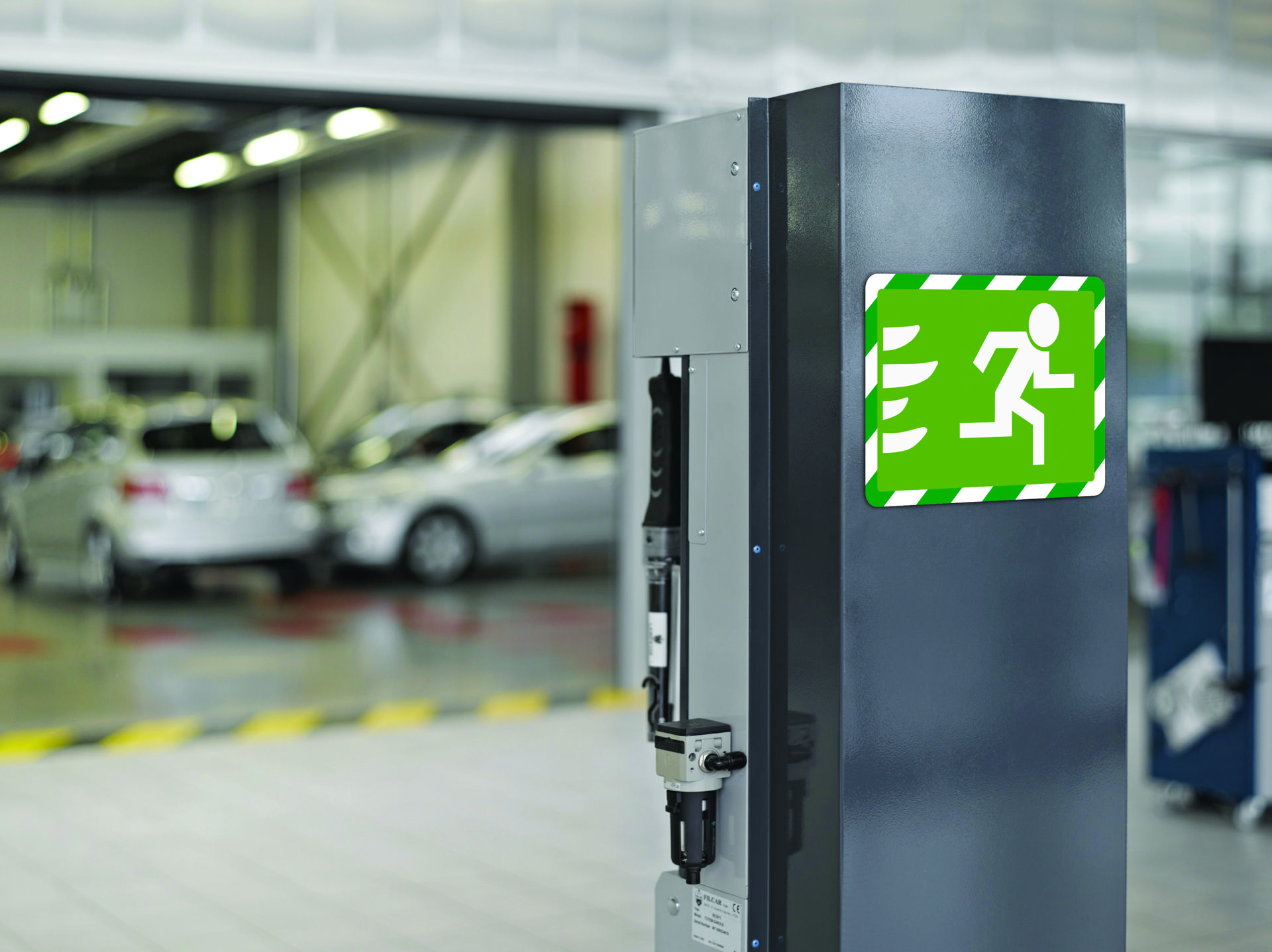 - Available in ISO 3864 standard colors: red/white, yellow/black, and green/white