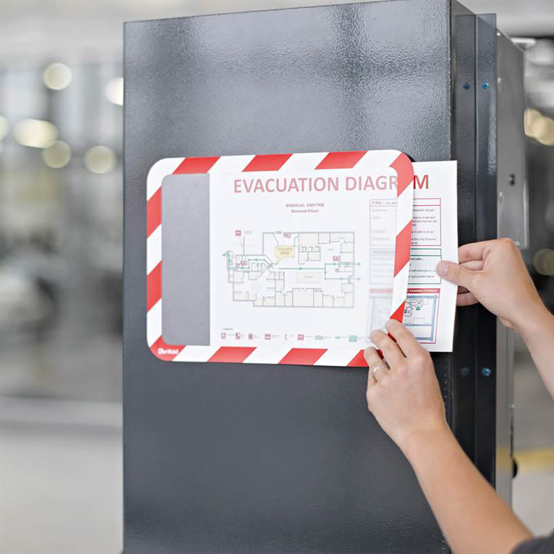 Frame and display important safety information with design and originality! The wide opening feature allows documents to be inserted and retrieved quickly.