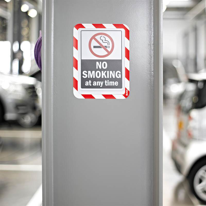 - Available in ISO 3864 standard colors: red/white, yellow/black, and green/white