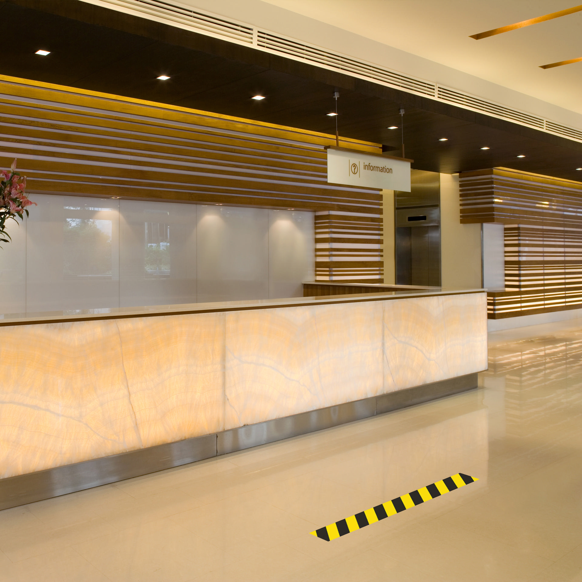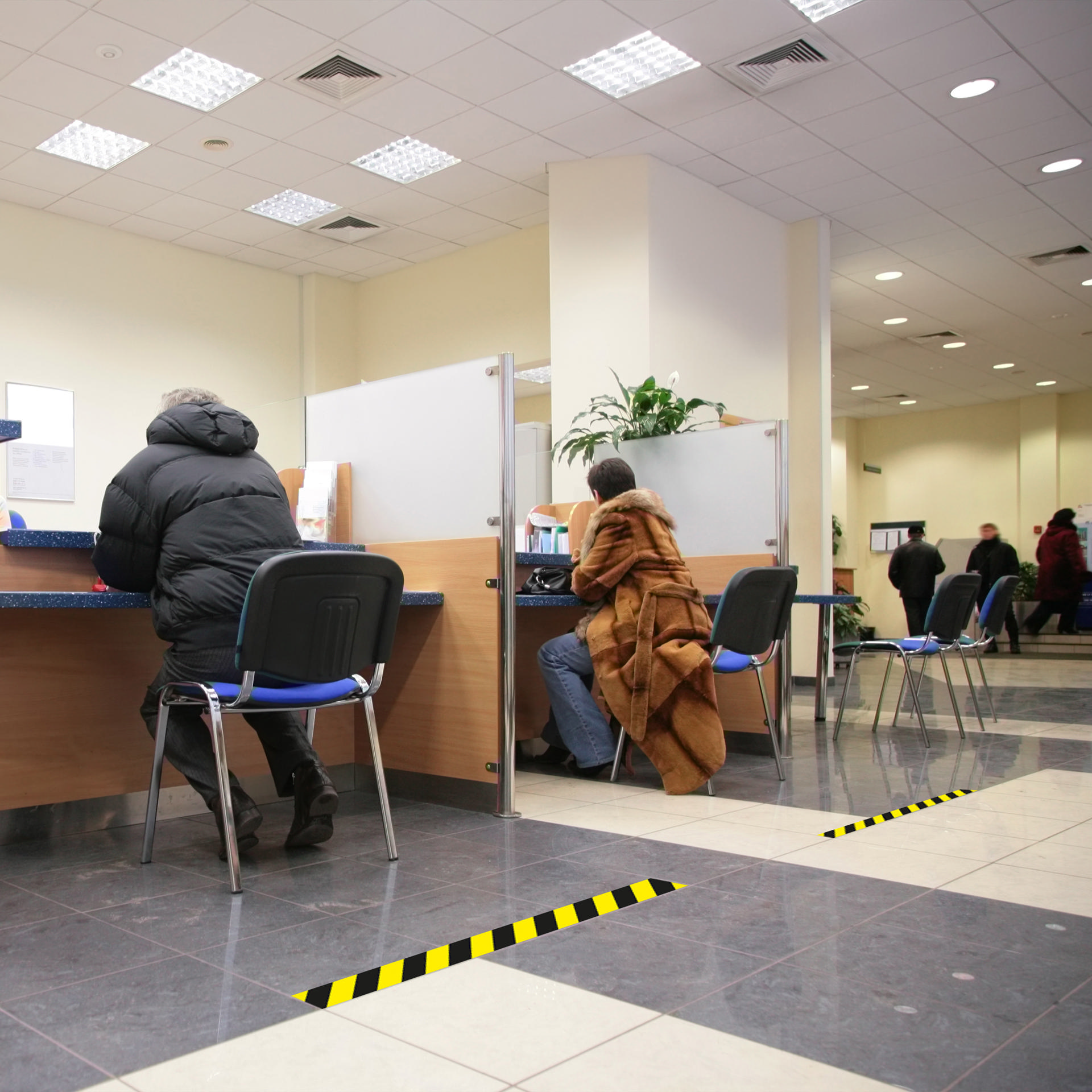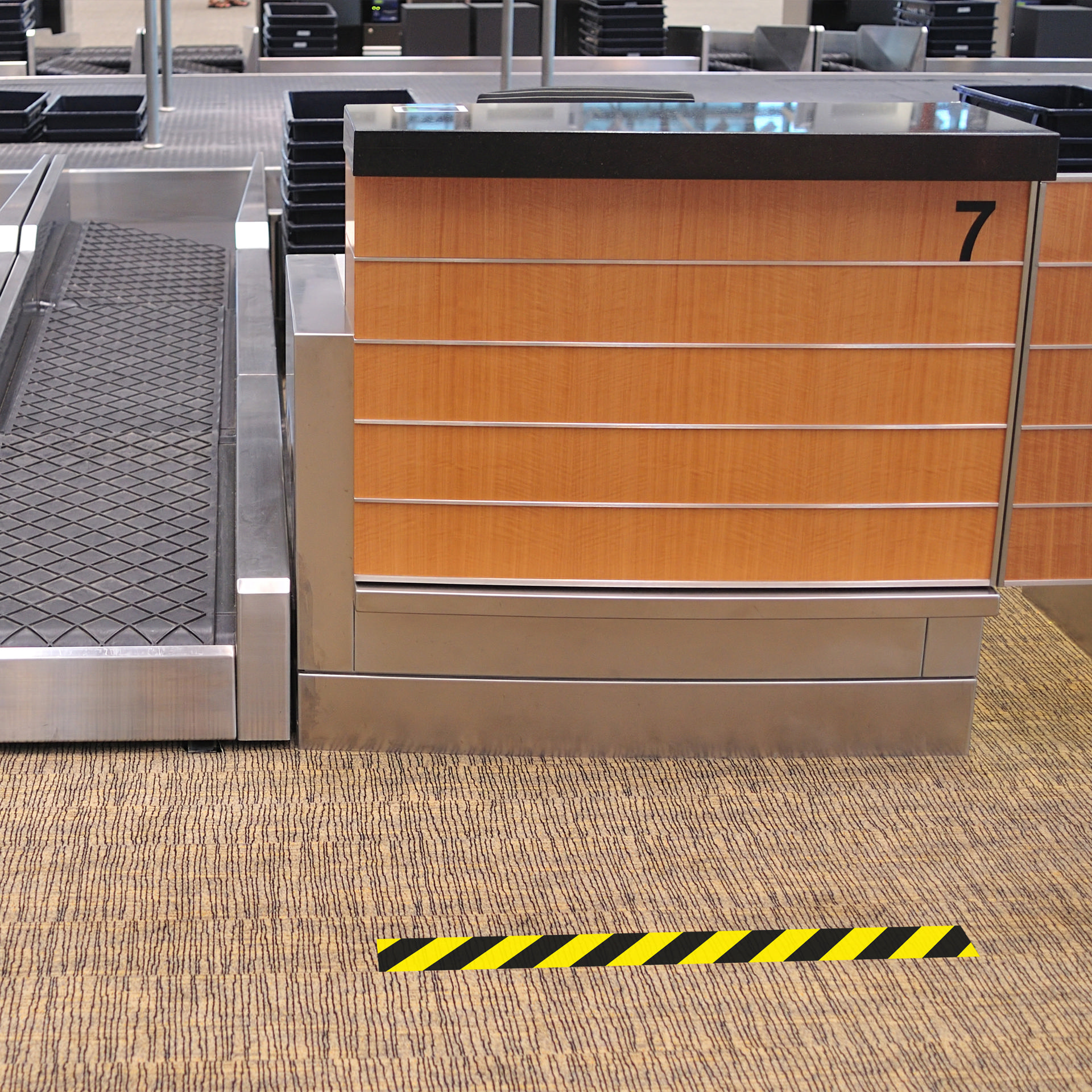A floor marking adhesive line to identify confidentiality zones, safeguard privacy areas and mark queue limits.