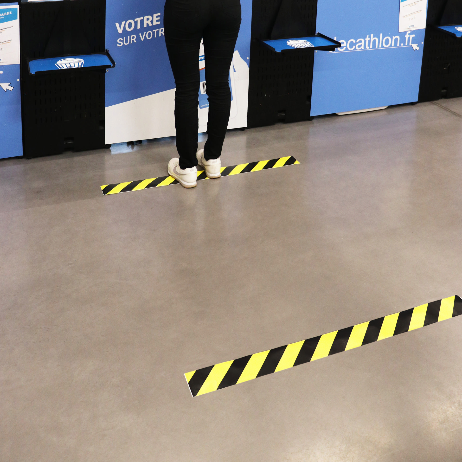 An adhesive floor marking line to identify confidentiality zones, safeguard privacy areas and mark queue limits. For indoor use and adapted to pedestrian traffic.