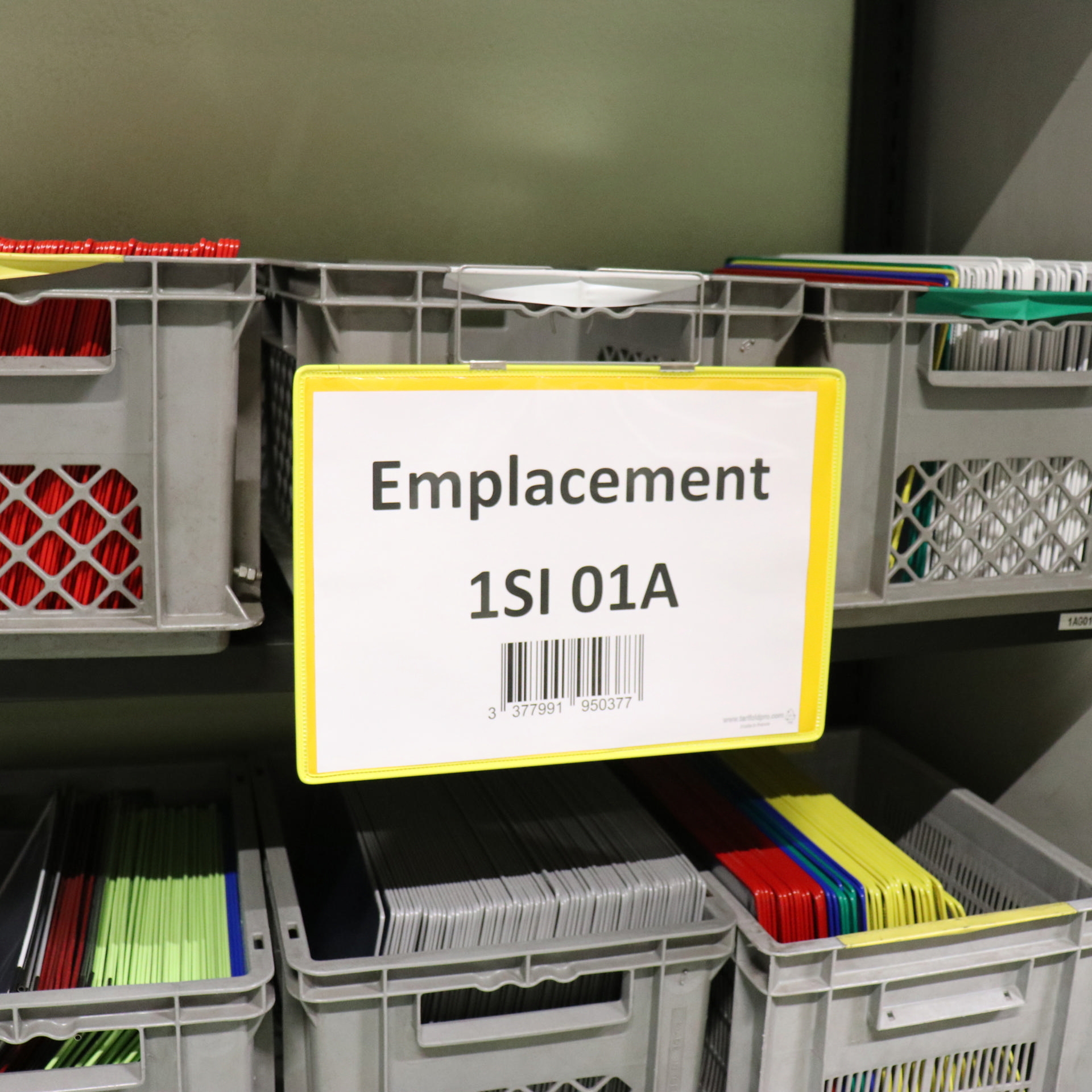 All Tarifolds know-how in this reinforced pocket especially made for a precise, visible and durable identification of all stored goods or goods circulating in the logistic chain. Integrated metal hangers for perfect hold of the pocket.
