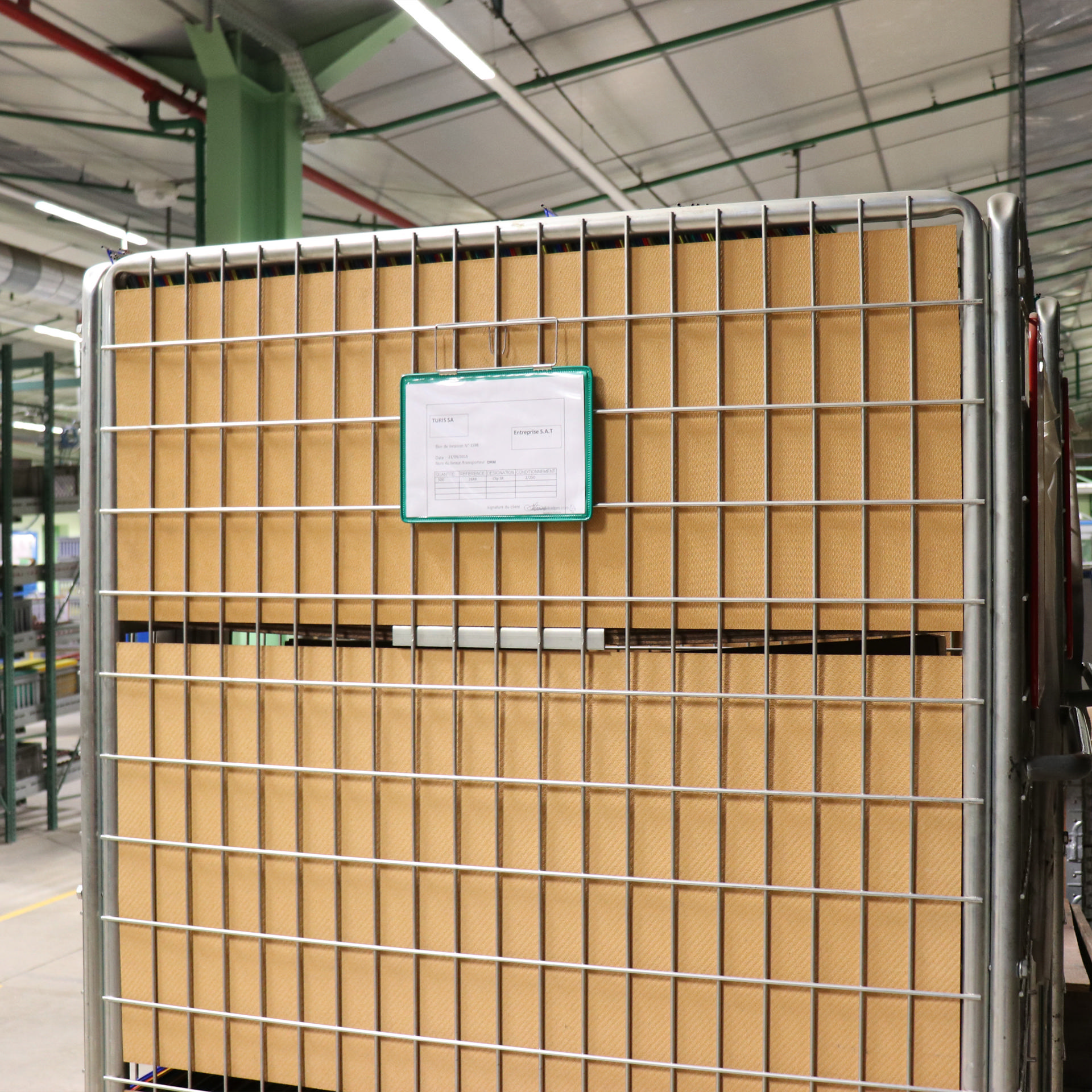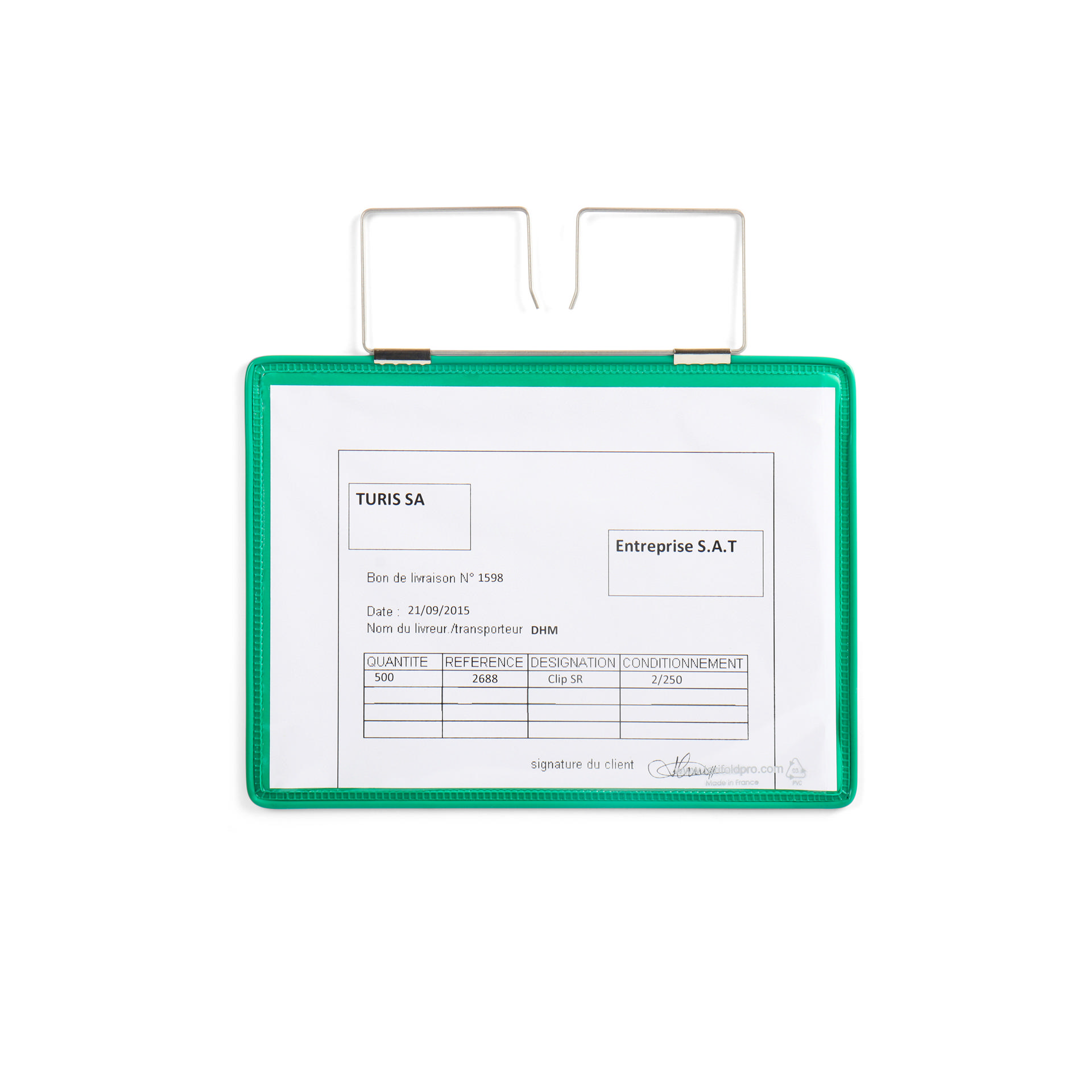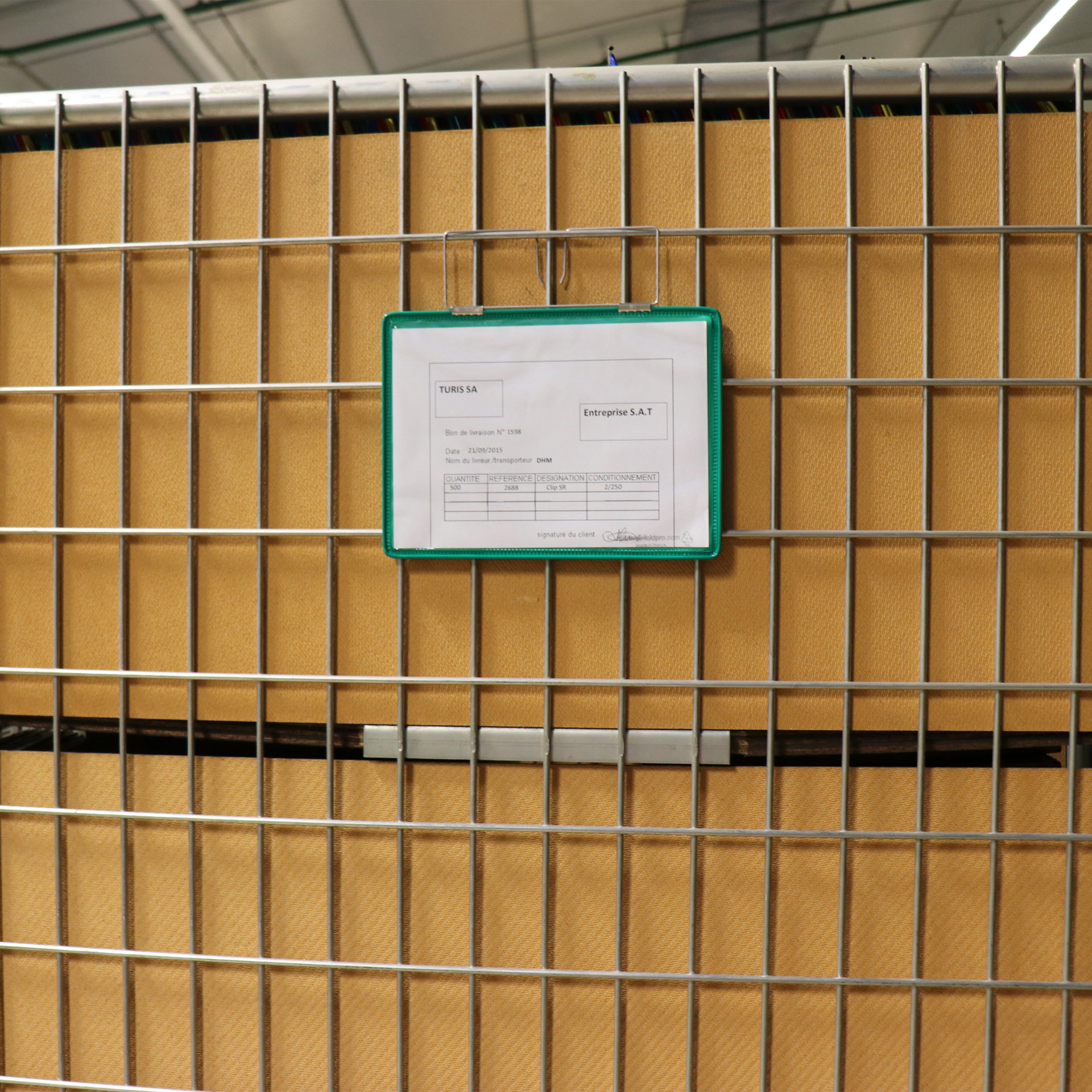 All Tarifolds know-how in this reinforced pocket especially made for a precise, visible and durable identification of all stored goods or goods circulating in the logistic chain. Integrated metal hangers for perfect hold of the pocket.