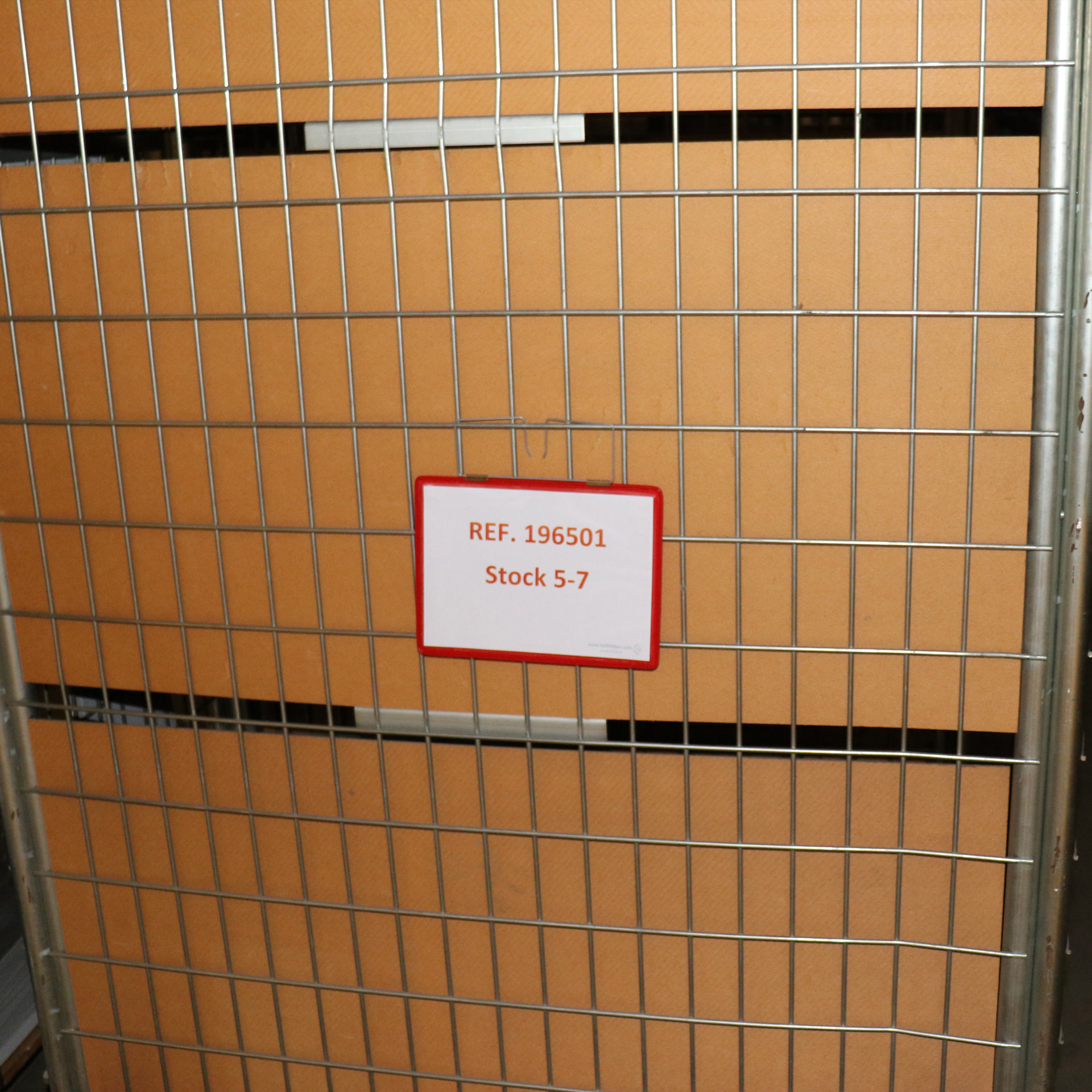 Reinforced identification pocket to hang for a precise, visible and durable identification of all stored goods or goods circulating in the logistic chain.