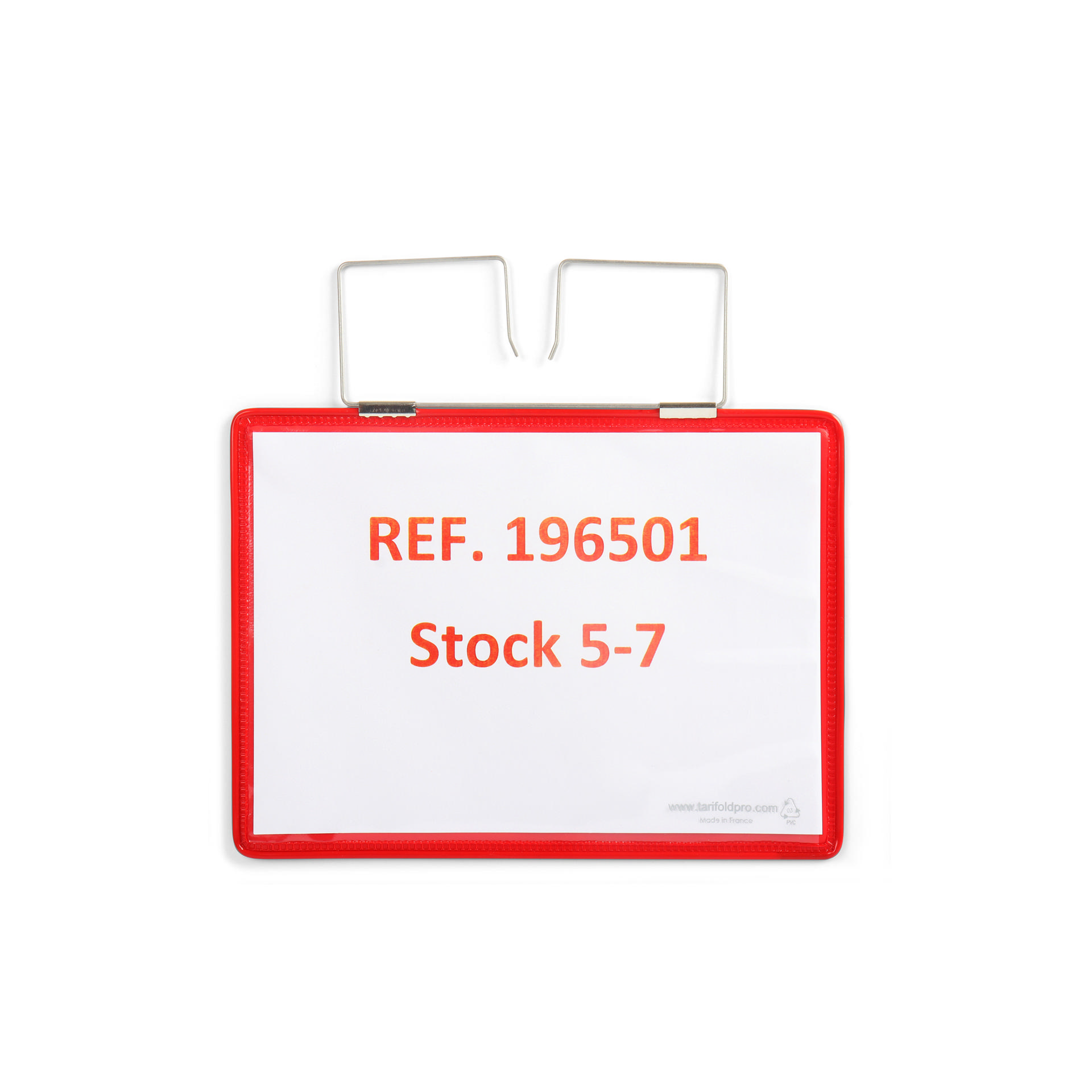 All Tarifolds know-how in this reinforced pocket especially made for a precise, visible and durable identification of all stored goods or goods circulating in the logistic chain. Integrated metal hangers for perfect hold of the pocket.