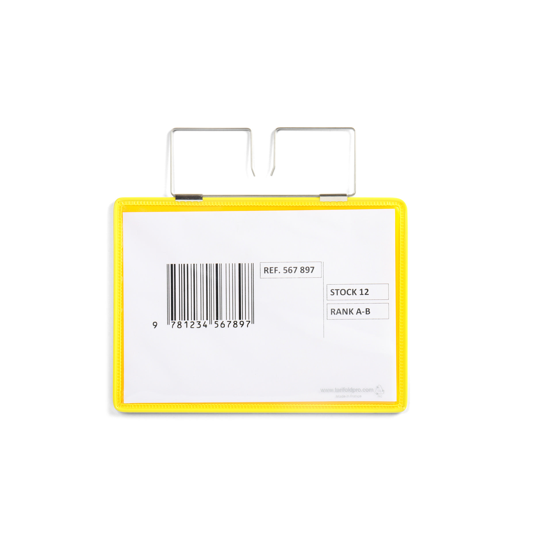 All Tarifolds know-how in this reinforced pocket especially made for a precise, visible and durable identification of all stored goods or goods circulating in the logistic chain. Integrated metal hangers for perfect hold of the pocket.