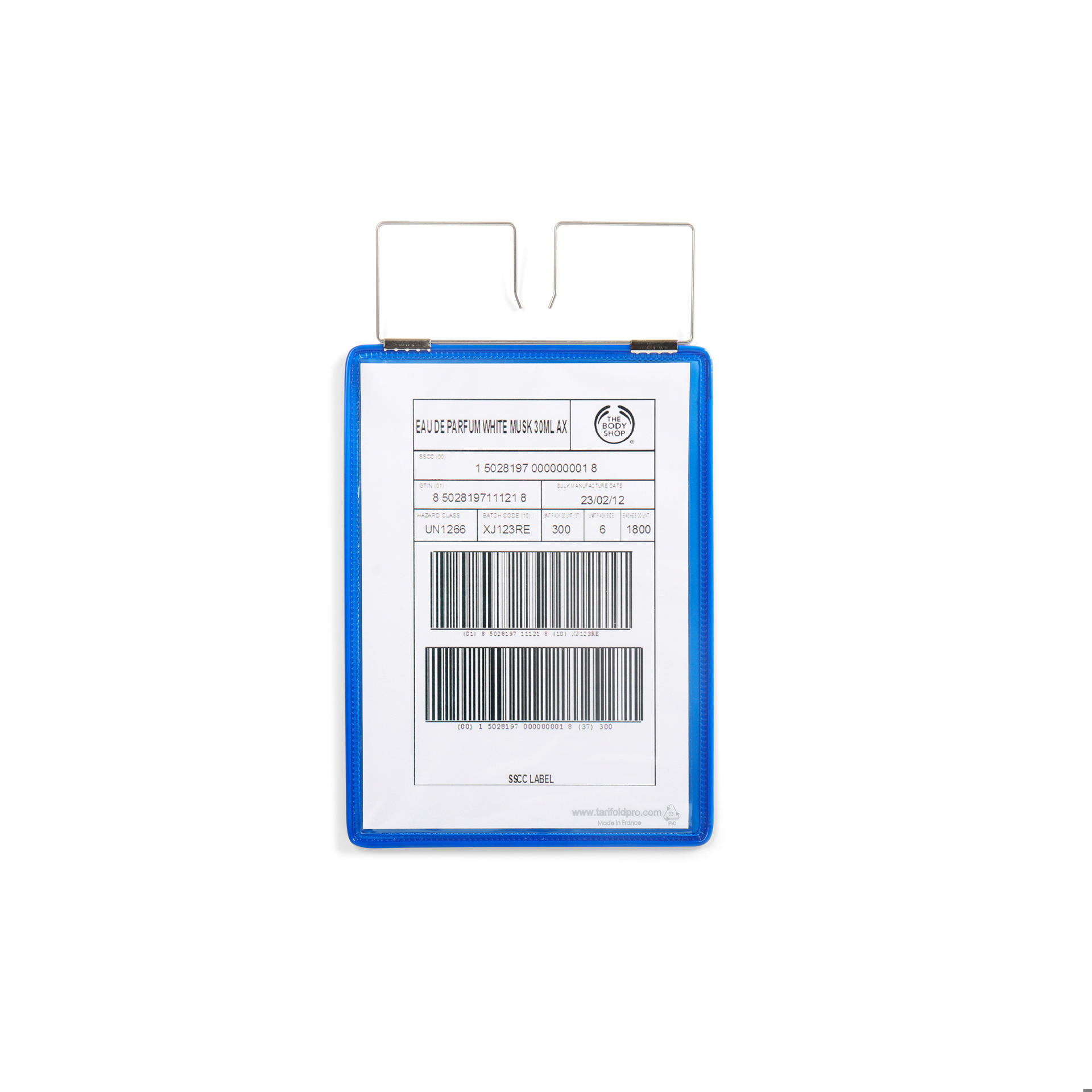 All Tarifolds know-how in this reinforced pocket especially made for a precise, visible and durable identification of all stored goods or goods circulating in the logistic chain. Integrated metal hangers for perfect hold of the pocket.