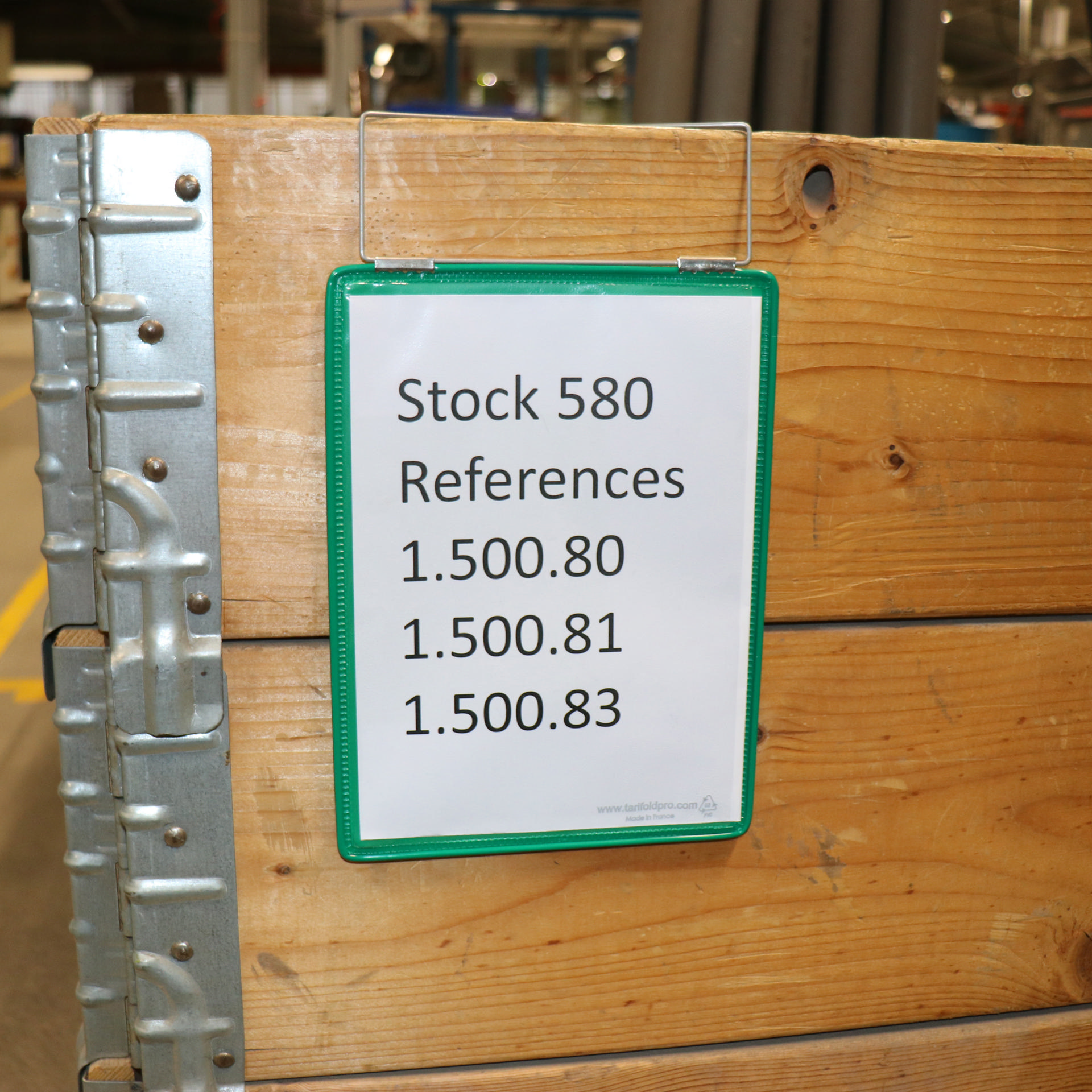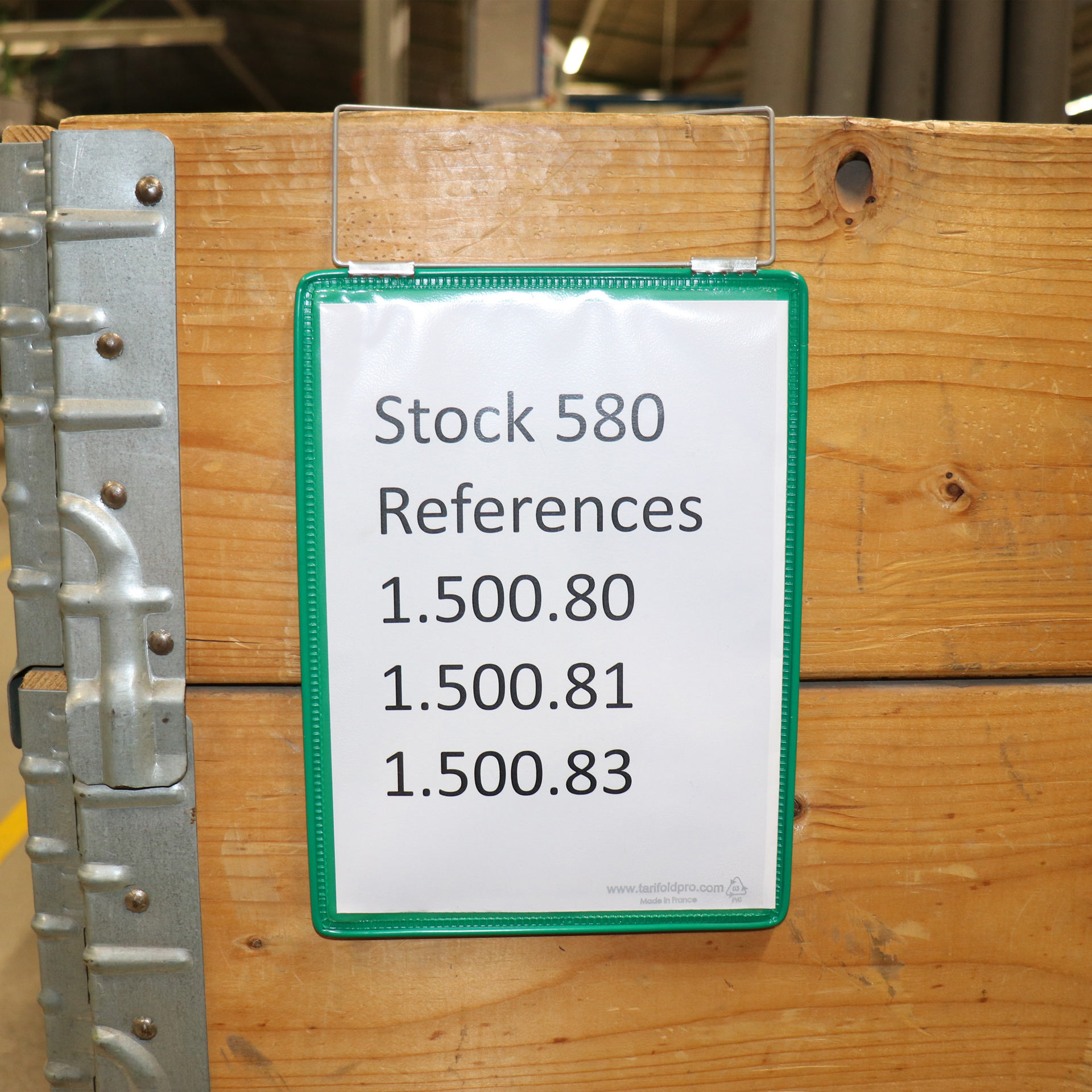 All Tarifolds know-how in this reinforced pocket especially made for a precise, visible and durable identification of all stored goods or goods circulating in the logistic chain. Integrated metal hangers for perfect hold of the pocket.