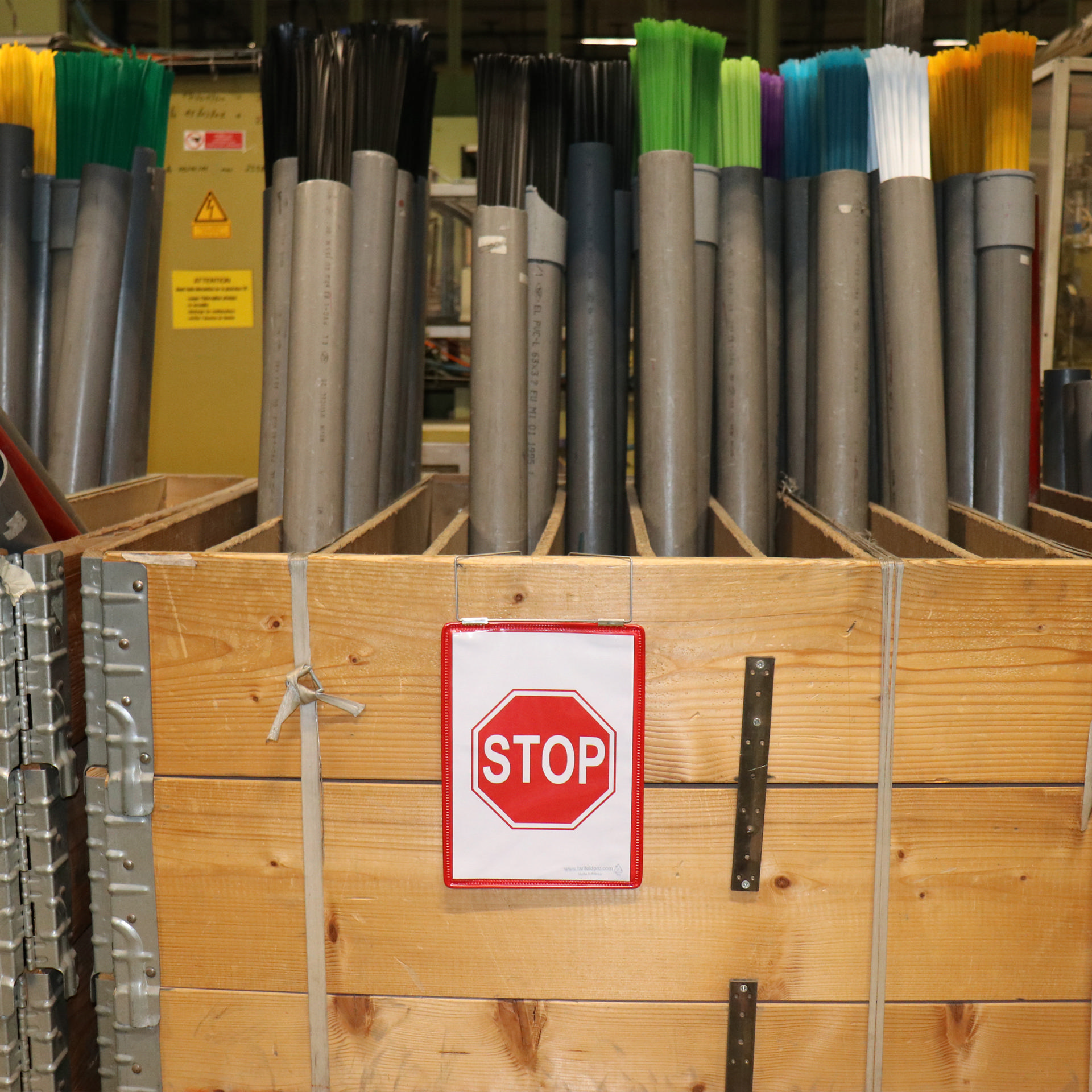 All Tarifolds know-how in this reinforced pocket especially made for a precise, visible and durable identification of all stored goods or goods circulating in the logistic chain. Integrated metal hangers for perfect hold of the pocket.