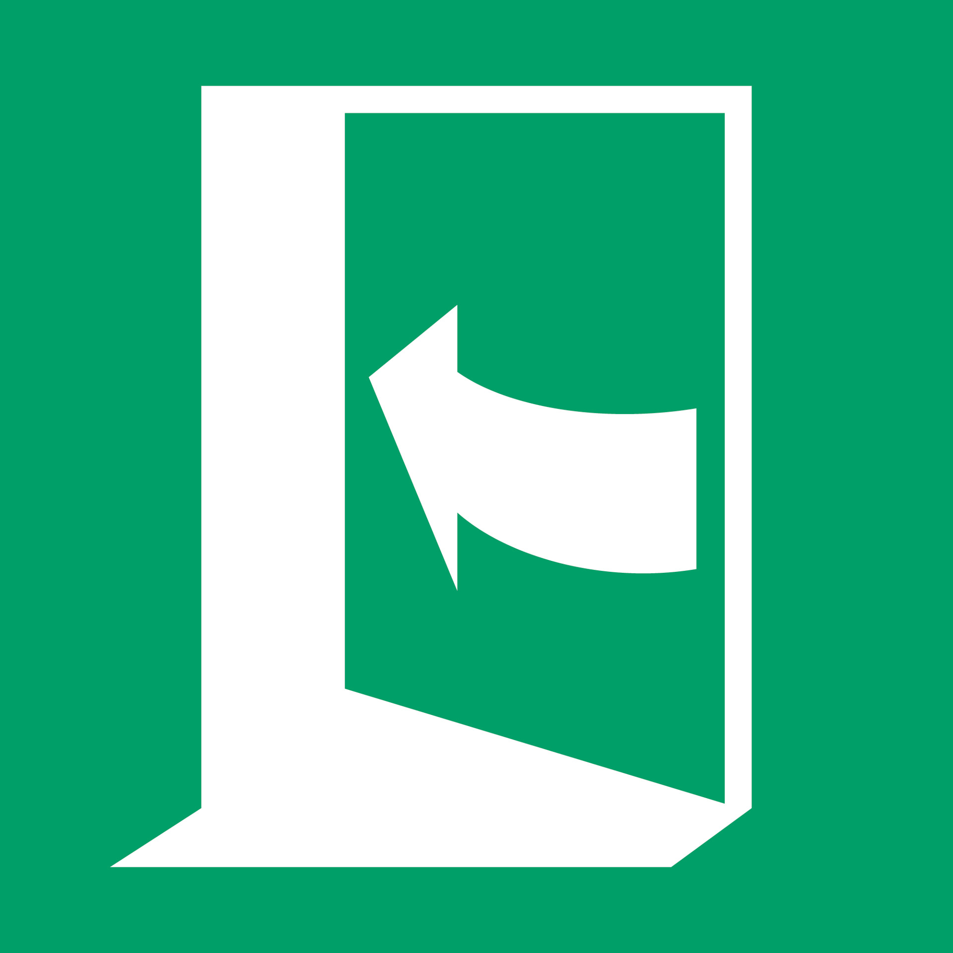 Safety Sign Door Opens by Pushing on the Left-hand Side, 300 x 300 mm