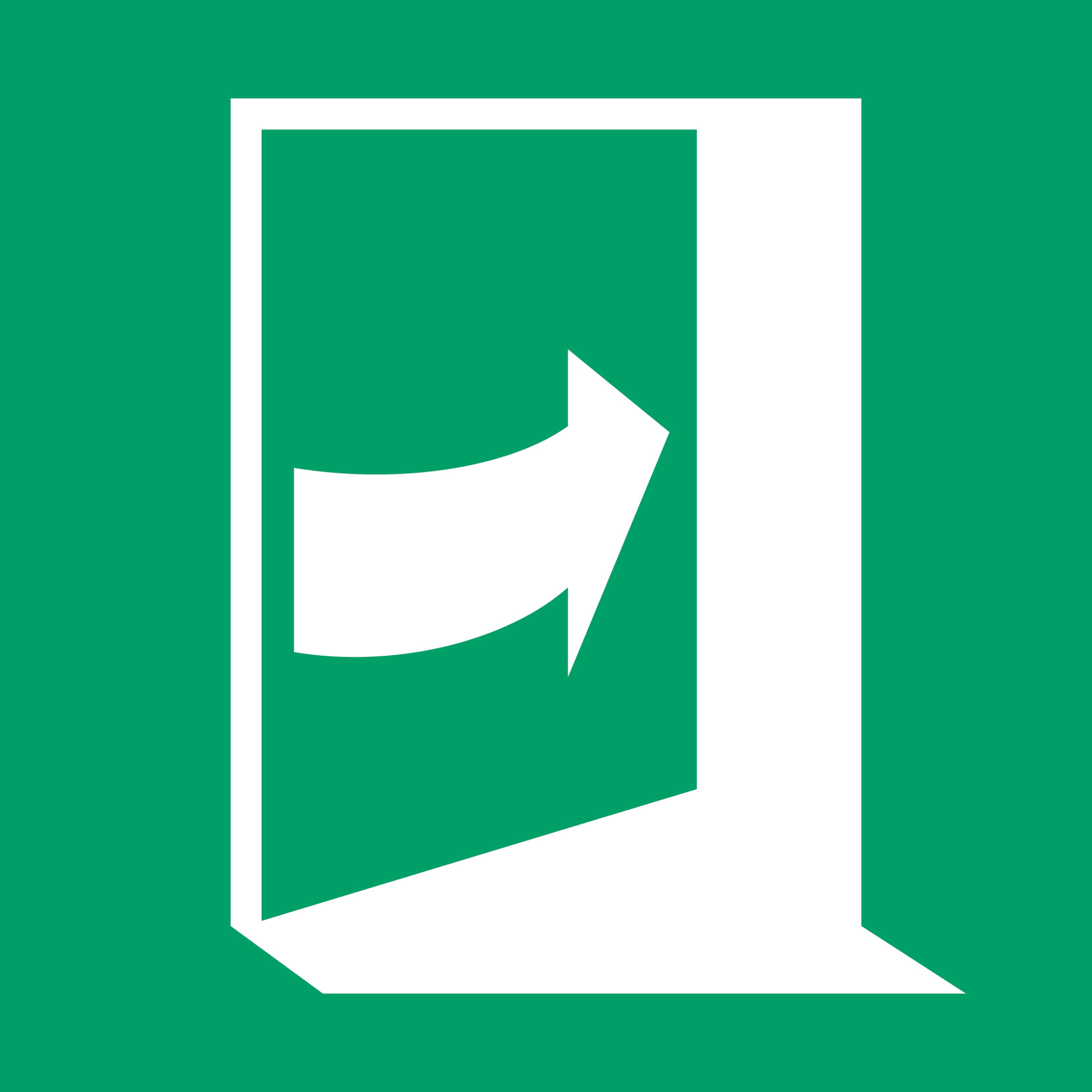 Safety Sign Door Opens by Pushing on the Right-hand Side, 300 x 300 mm