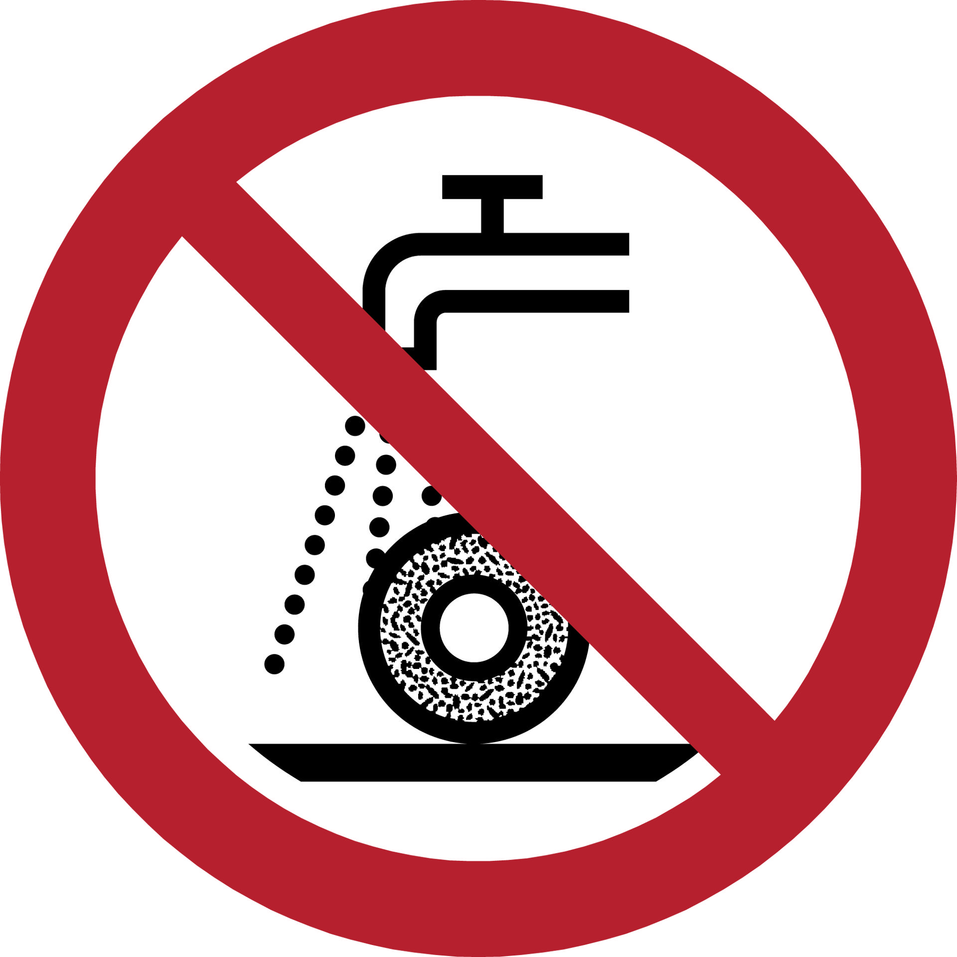 Easy to mount plastic sign to point out that it is forbidden to use the grinding wheel for wet grinding.