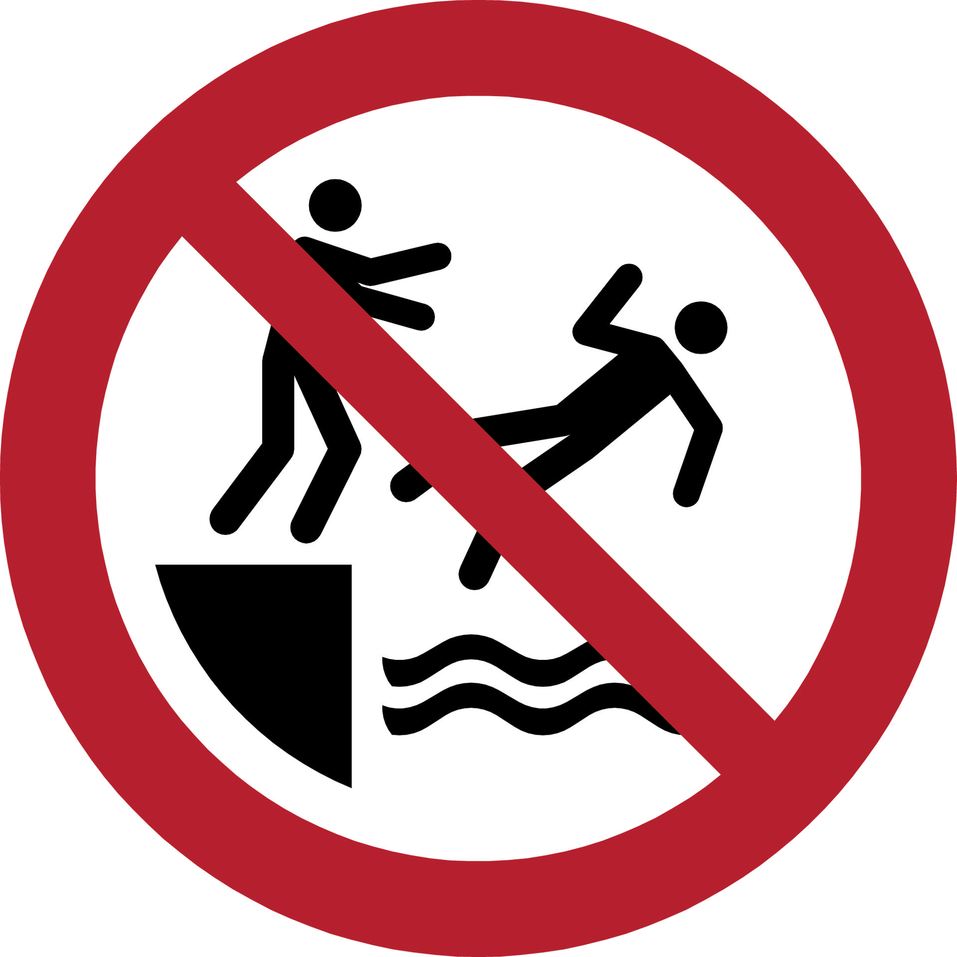 Easy to mount plastic sign to point out that pushing someone into the water is not allowed here.