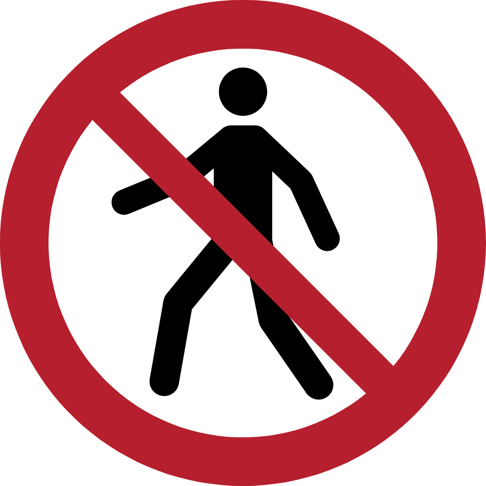 Easy to mount plastic sign to draw attention to the fact that pedestrians have no passage here.