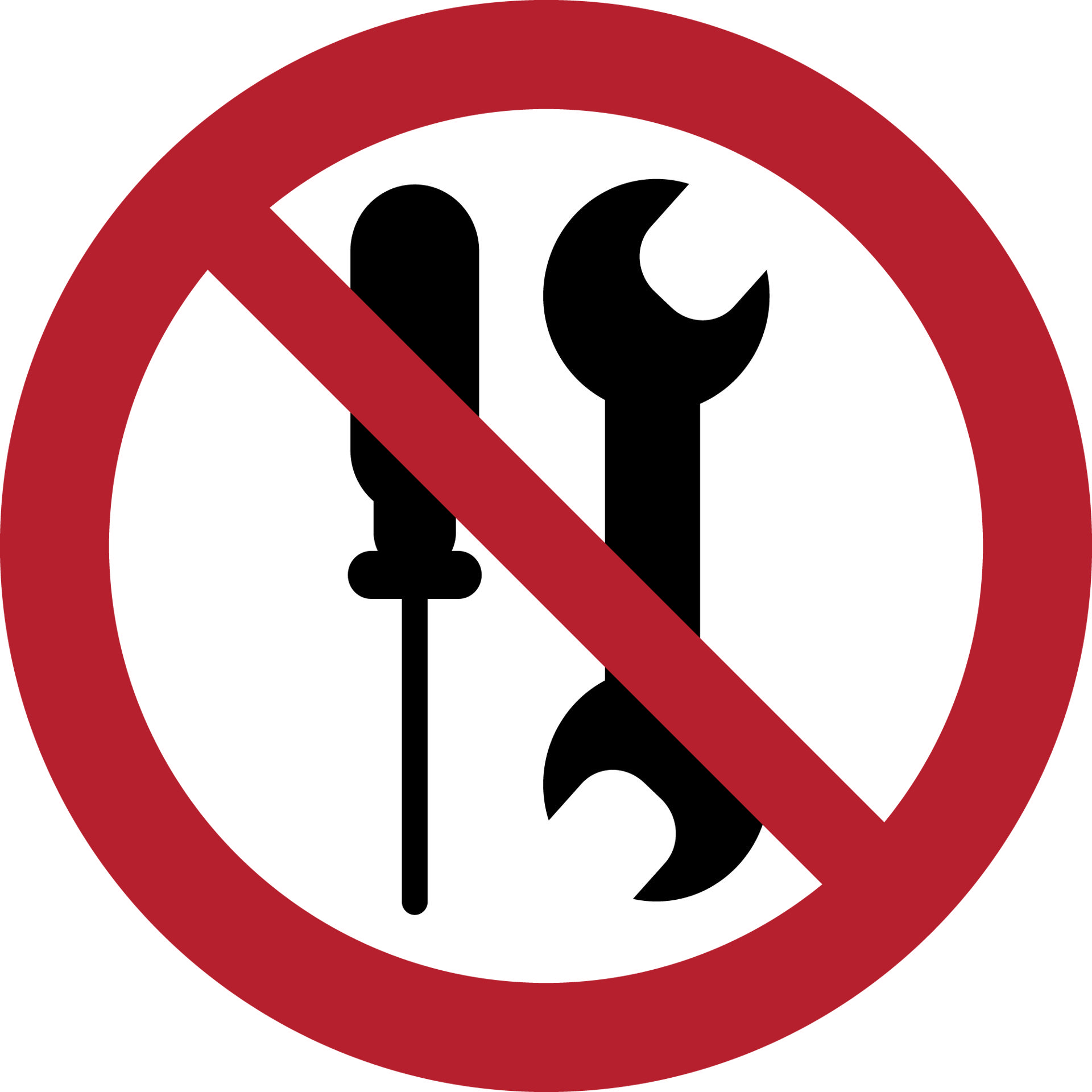 Easy to mount plastic sign to point out that it is forbidden for users to maintain the object independently.