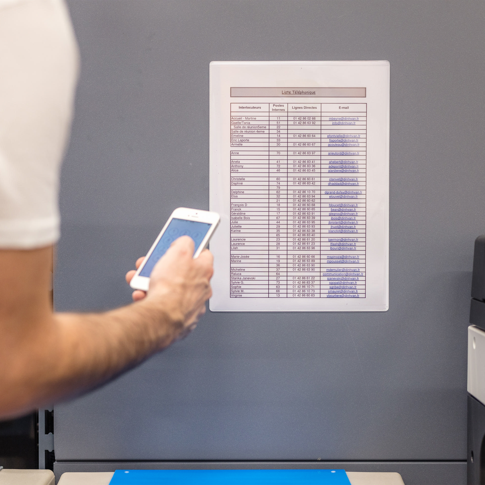 Our A4 magnetic pocket keeps your documents neat, visible, and right where they need to be. Full magnetic back ensures perfect stability and easy set-up.